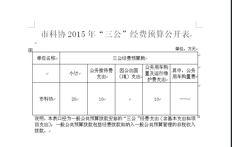 常德市科协2015年“三公”经费预算公开表