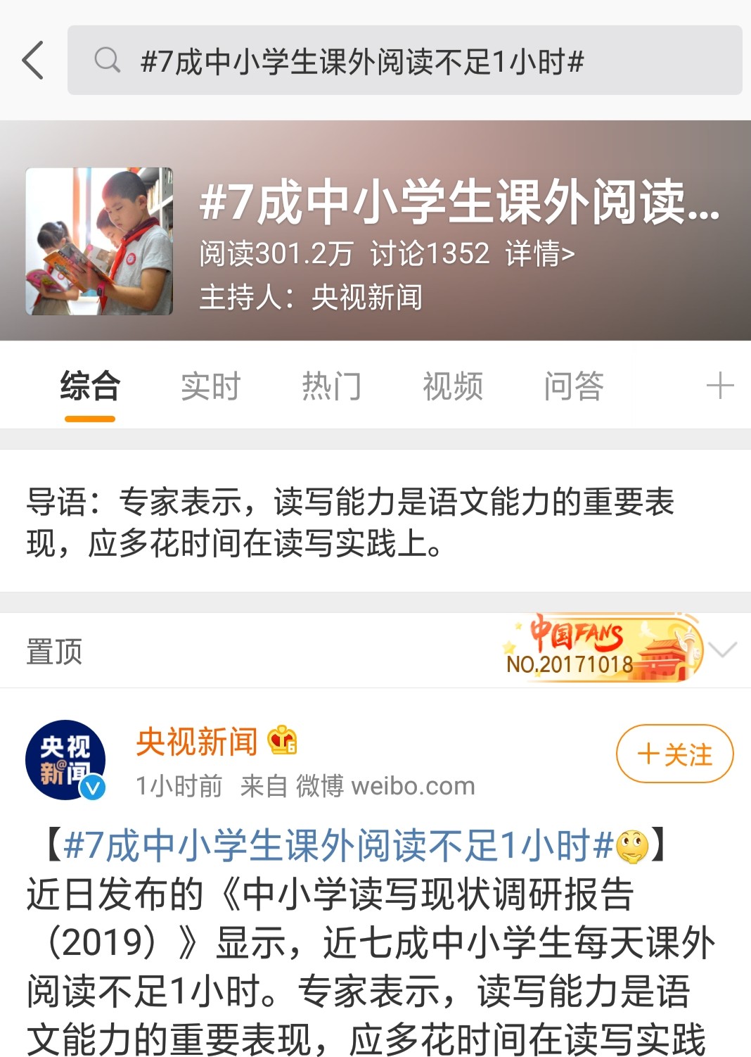 近日发布的《中小学读写现状调研报告(2019)》显示,近七成中小学生每天课外阅读不足1小时。专家表示,读写能力是语文能力的重要表现,应多花时间在读写实践上。