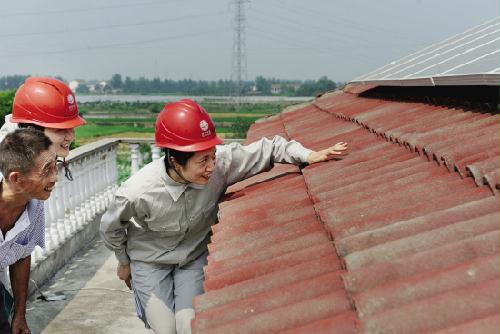 李守义家建在一片农舍中,我们爬上屋顶,只见14块多晶硅光伏电池板组件摆放成长方形,用支架与瓦顶相联。电力技术员告诉我们,每块电池板功率为230W,采用一台额定功率3千瓦逆变器,据预测,该屋顶光伏每天约发电10千瓦时。李守义实际安装成本约3万元。