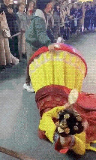 据了解,想平稳地站在不倒翁表演道具上,其实并不容易。表演时,演员底部是一个半圆形的不倒翁道具,中间固定着一个T字状的铁架子。仅靠腰部发力运作不倒翁的底座,不断的前后左右的摇摆,所以对身体柔韧性、腰部力量、甚至体重等等都有很高的要求。“体重不过百”是首要条件。表演前,演员们在工作人员的帮助下站上道具,将腰部和腿部固定在架子上,扣好安全绳,再罩上襦裙。表演结束后,小姐姐们腰部和腿部都曾被磨得青一块紫一块。后来道具师进行了调整,再加上他们逐渐掌握了动作要领,情况才好了一些。