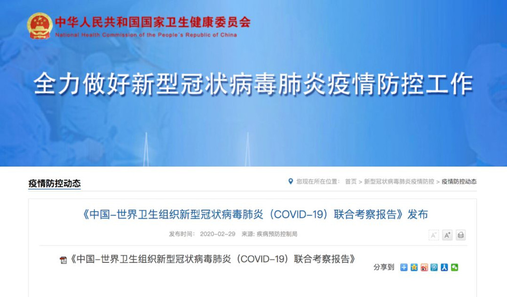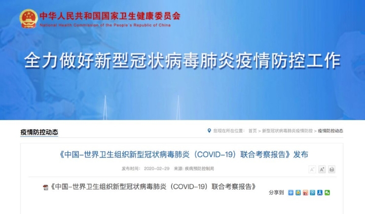 2月29日,国家卫生健康委发布《中国-世界卫生组织新型冠状病毒肺炎(COVID-19)联合考察报告》,公布了对新冠肺炎的最新研究结果与应对措施。
