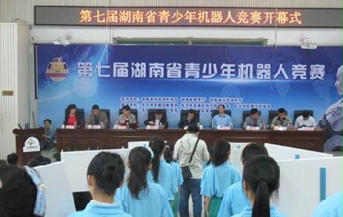 第七届湖南省青少年机器人竞赛由省科协、省教育厅和省科技厅共同主办,以“探索创新,快乐成长”为主题,包括FLL机器人工程挑战赛、VEX机器人工程挑战赛、机器人创意比赛、机器人综合技能比赛、机器人足球比赛和教育机器人即兴擂台赛六大类竞赛项目。每类竞赛项目又分设小学组、初中组、高中组三个组别,并选拔10个项目组成湖南代表团参加今年的第十四届中国青少年机器人竞赛。