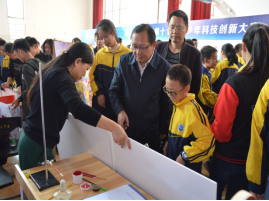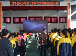 11月2日,由汉寿县科学技术协会、汉寿县教育局、汉寿县科工局、汉寿县环境保护局、共青团汉寿县委联合主办,汉寿县詹乐贫中学承办,备受青少年科技爱好者广泛关注和喜爱的2018年汉寿县第十七届青少年科技创新大赛在詹乐平中学隆重举行。汉寿县委副书记刘毅翔、县教育局局长雷常元、县科协主席杨常林、县科协副主席朱世平、县詹乐平中学校长杨明华及全县各中、小学校长、分管科技创新工作的副校长、科技辅导员、参赛学生代表、县电视台等媒体的记者同志出席了本次开幕式。大赛由县教育局副局长曾健主持;詹乐贫中学校长杨明华、县教育局局长雷常元发表讲话;县委副书记刘毅翔宣布现场展评活动正式开始。