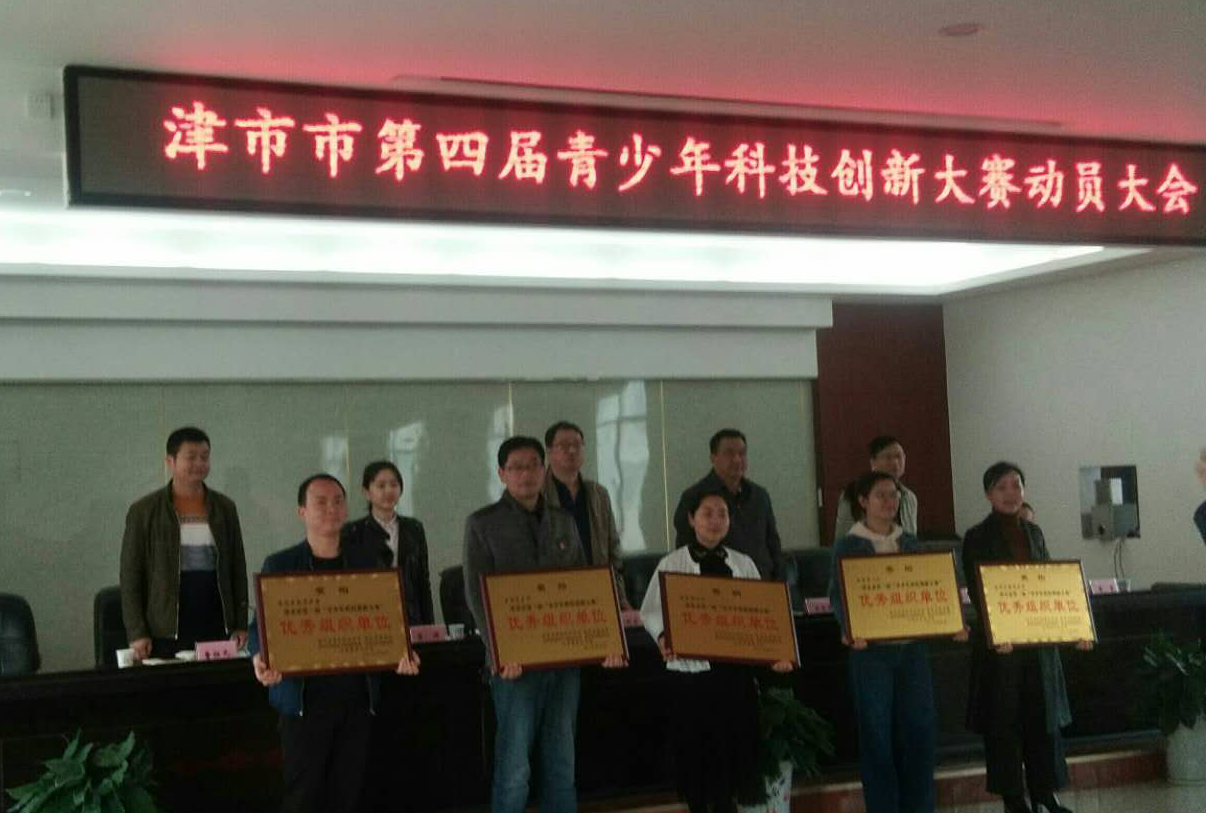 4月16日,津市市第四届青少年科技创新大赛动员会暨2018年大赛颁奖典礼在津市市教育局会议室举行。市科协、教育局、常德市生态环境局津市分局、市共青团等部门领导、各中小学负责人以及获奖师生代表共100多人参与了此次动员会议。会议由教育局教育股股长主持。优秀教师代表及获奖单位代表介绍了他们在科技创新教育方面的经验和他们所取得的成绩。