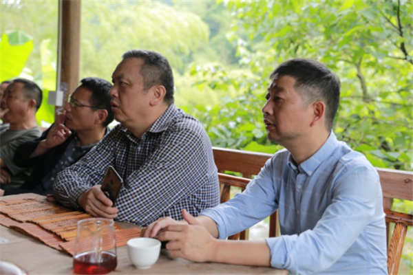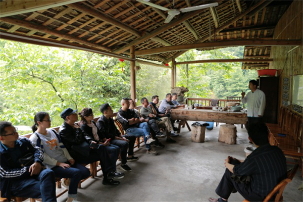 科技工作者认真听负责人介绍茶历史