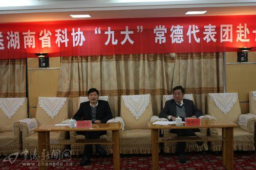 12月7日上午,湖南省科协“九大”常德代表团赴省参会欢送仪式在芷园宾馆隆重举行。市委常委、市委组织部部长、市委统战部部长石谋军、副市长朱晓平出席欢送仪式,石谋军作重要讲话。