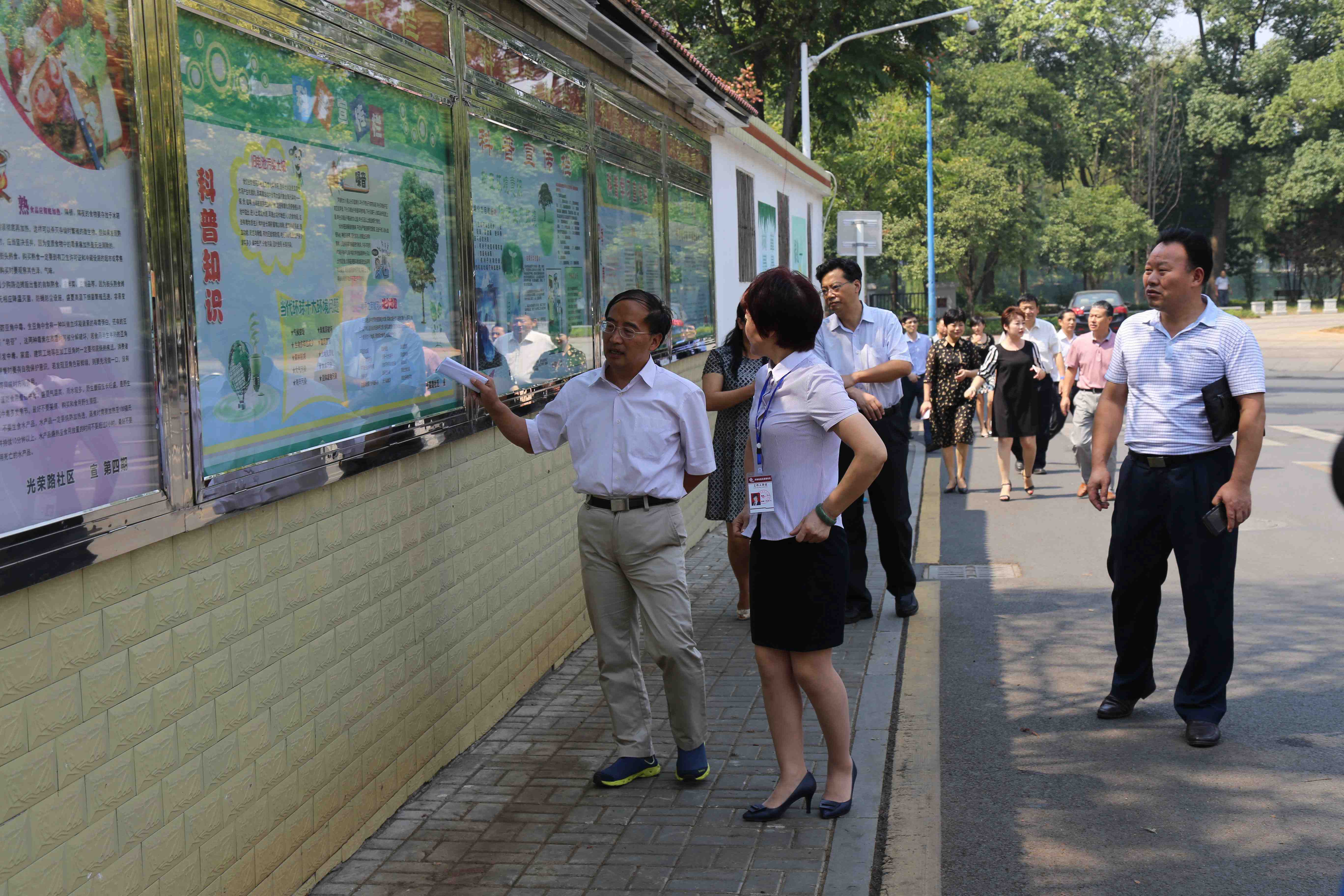 督查组一行实地查看光荣路社区科普宣传长廊