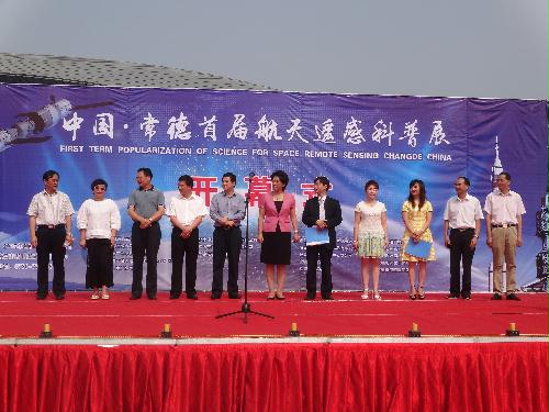9月1日,常德首届航天遥感科普展在柳叶湖旅游集散中心举办开幕式。市人民政府副市长陈华、中国遥感协会副秘书长卫征、市教育局副局长庹朝君、市科协副主席夏小雯、常德市经投集团董事长刘凡荣等参加了开幕式。