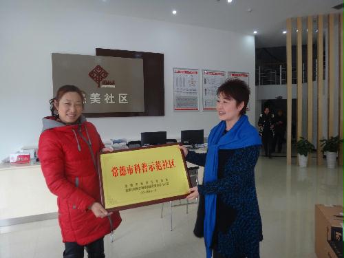 近日,市科协副主席夏小雯带领普及部、科普办部室负责人,向丹阳街道光荣路社区、府坪街道百街口社区、武陵区东升小学等部分市级科普示范社区和市级科普示范学校授牌,赠送电脑、投影仪、相机等科普设备并进行调研。