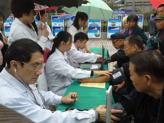 前来义诊咨询台就医咨询的群众络绎不绝