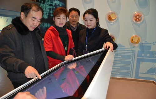 市科协党组成员体验展品“科学餐厅”