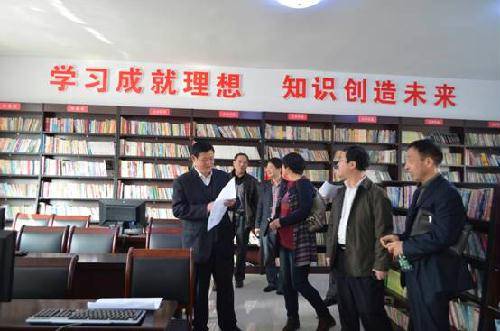 李守海主席(左一)、贵学军副主任(右二)参观方家巷社区科普图书室