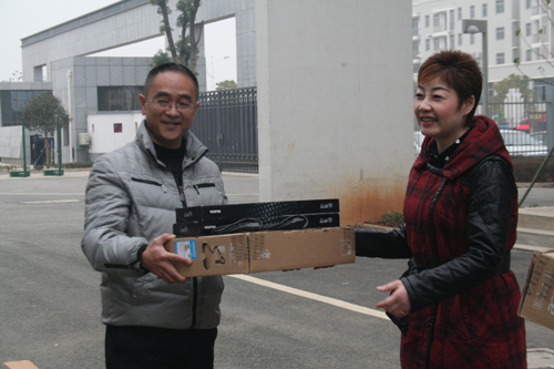 市科协副主席夏小雯代表市科协向崇德中学赠送电脑