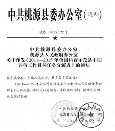 桃源县县委书记对“全国科普示范县”中期评估迎检工作作出重要指示