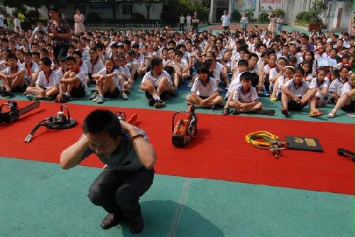 “六一”前夕,由安利公益基金会和常德日报传媒集团小记者俱乐部联合主办的大型防震减灾演习在甘露寺小学展开。常德市教育局、市地震局、市科协、市消防支队和武陵区全民科学素质工作领导小组相关成员单位全程参与了此次活动。学生们在消防官兵的指导下,有序的进行防震演习。