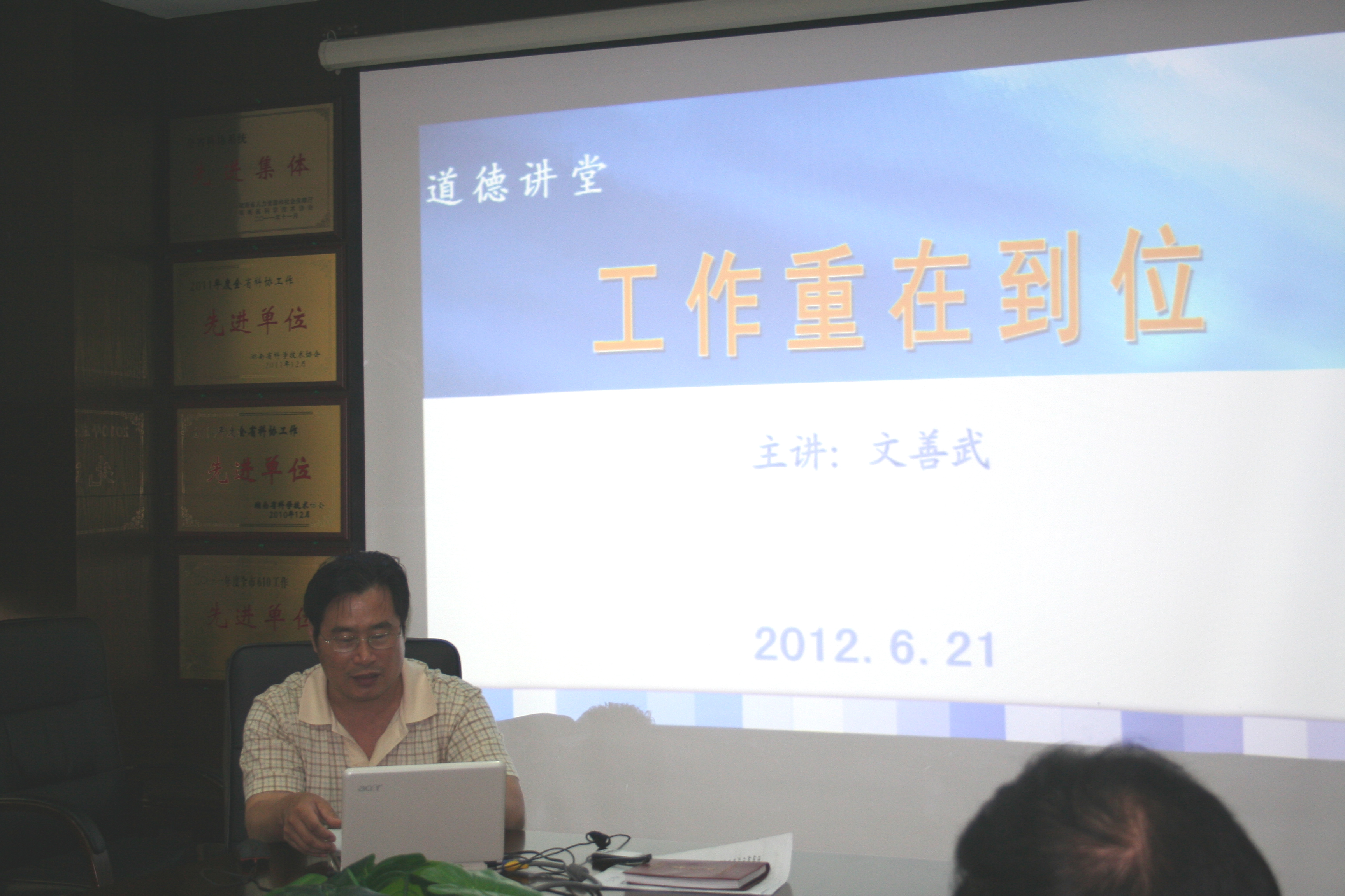 《工作重在到位》由市科协副主席文善武同志主讲,他用丰富生动的案例从工作要点、心态、思维及行为准则四个方面阐述了工作到位要注意的问题。这就要求我们要践行创先争优,扎实推进每个阶段的工作,切实把本职工作落到实处。