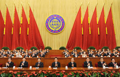 527,中国科学技术协会第八次全国代表大会在北京人民大会堂开幕。胡锦涛、温家宝、贾庆林、李长春、习近平、李克强、贺国强、周永康等党和国家领导人到会祝贺。新华社记者 饶爱民