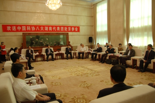 今天上午八时,中国科协“八大”湖南代表团赴京欢送仪式在九所宾馆隆重举行,中共湖南省委副书记梅克保主持欢送仪式,中共湖南省委副书记、省长徐守盛出席并作重要讲话。徐守盛、梅克保来到会议室,与代表们一一握手、亲切问候。徐守盛希望同志们积极建言献策,积极发出湖南科技工作者的声音,充分展示我省科技工作者的风采和形象,充分展示湖南代表的境界和水平。