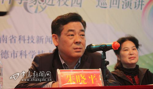 朱晓平代表常德市委、市政府,向前来指导工作的省科协、省科技新闻学会领导和两位科学家表示热烈的欢迎。他号召,青少年学生要学习科学家的品格和精神,崇尚科学、热爱科学、学习科学,激活思维、激活创意、积极实践、勇于探索,成为具有创新精神和实践能力的知识经济时代的有用人才。