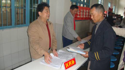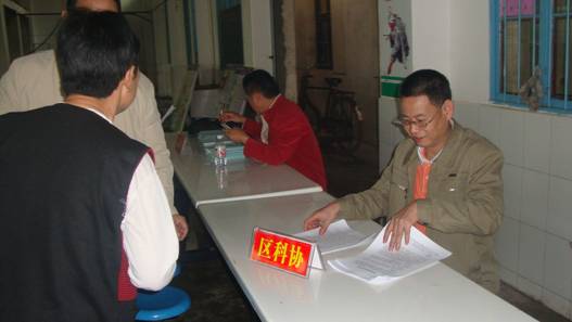 区科协党组书记、副主席杨志涛免费为农户发放资料(廖长清摄)