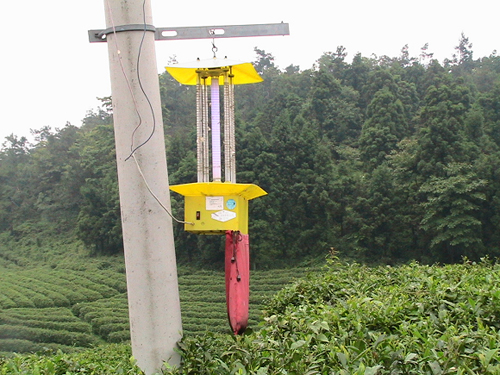基地广泛推广的诱蛾“杀虫灯”和蜘蛛捕杀茶叶害虫