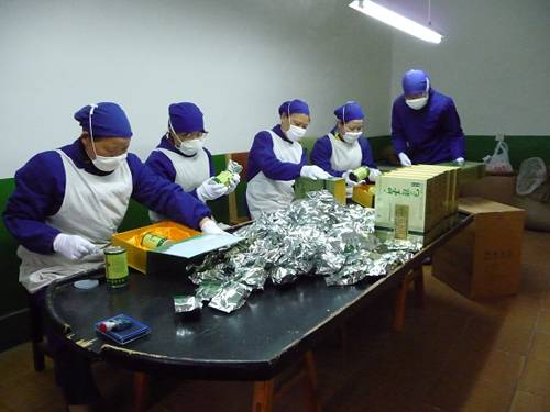 基地加工车间工作人员精心包装产品