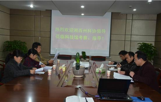 2016年3月10日上午,湘西州科协党组书记、主席罗序英,副主席刘慧平一行莅临常德市科技馆就湘西州科技馆项目建设相关事宜进行实地考察。常德市科协党组书记、主席谭卿平,秘书长、科技馆馆长王宏武,科技馆馆长助理陈湘平陪同接待。