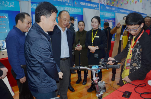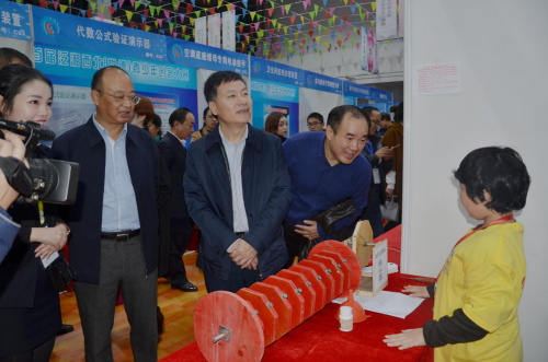 开幕式结束后,刘晓河、沈习淼及各位嘉宾、观摩代表共同参观了大赛作品展示厅。刘晓河同志亲切的与参赛选手们进行了交谈,了解作品的创新理念、制作过程、使用方式及实际意义,充分肯定了本次大赛为提升湘西北地区科技创新水平做出的贡献,并指出,通过本次大赛提高了湘西北地区青少年学生的创新热情、创新意识和实践能力,弘扬了“工匠精神”,推动了泛湘西北地区科学普及和科技创新活动的深入开展。