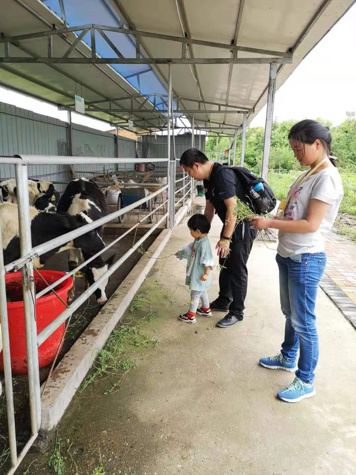 旅程当天,孩子们在家长的陪同,首站到达了奶牛养殖场,讲解员生动形象的向小朋友介绍了奶牛身体构造及生活习性,还带领孩子们来到小牛生活区,体验喂养小牛项目。小朋友以初生牛犊不怕虎的勇气,将牧草送到小牛嘴边,乐呵呵的拿着等小牛来争夺。有的孩子细心的观察到奶牛耳朵上有一个绿色小圆牌,“这是奶牛的身份证,像你们名字或学生证一样。这是牛奶溯源的起点,小小的铭牌会告诉你们每天喝到的牛奶来自哪头奶牛。”