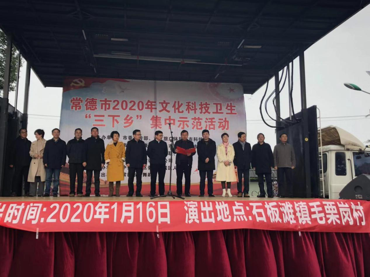1月16日,由常德市委宣传部牵头,市科协等单位联合举办的2020年常德市文化科技卫生“三下乡”活动启动仪式在石板滩毛栗岗村举行。常德市委副书记朱水平出席并在启动仪式上讲话。